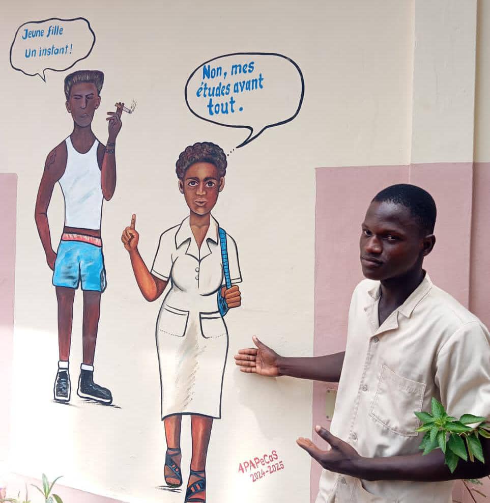 Les œuvres des participants, riches en messages, ont illustré leur engagement. Parmi elles, le chef-d’œuvre de Steve Hounguè, lauréat de cette édition, montre une jeune fille en uniforme scolaire repoussant les avances d’un garçon avec le message : « Non, mes études avant tout ». Une création si forte qu’elle a été reproduite sur le mur de la surveillance du collège, transformant l’établissement en galerie à ciel ouvert.