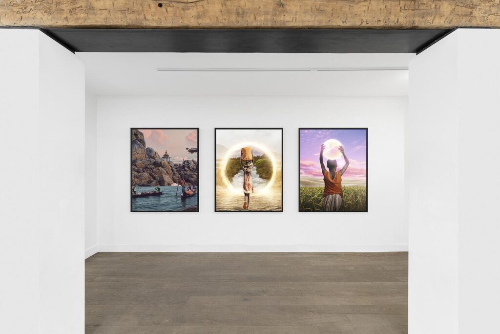 Maxence Bentho, fort de quinze années de métier tissées entre sa naissante Cotonou et la lumineuse Paris, n’avait pas simplement accroché des toiles aux cimaises. Il avait bâti un refuge. Un sanctuaire dédié à l’innocence. Sur ses toiles de grand format, des ciers infinis, profonds comme l’océan, se mariaient à des champs de blé dorés baignés d’une lumière d’éternité. Et au milieu de ces paysages grandioses, de dos, toujours de dos, se tenaient de jeunes enfants. Leurs silhouettes, frêles mais debout, contenaient le monde. Ils étaient les guides silencieux d’un univers où tout redevient possible. Ce premier opus fut un choc esthétique et émotionnel. « Le Rêve d’enfant est une suite artistique d’œuvres qui allie peinture et art moderne avec une touche personnelle », confiait alors l’artiste avec son humilité coutumière. « Son sens profond est de montrer l’univers et la marche du monde depuis les yeux émerveillés d’un enfant. »