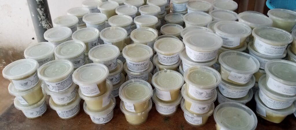 À travers ce projet, les femmes des localités de Dangbo, d’Adjohoun et environs sont en mesure d’impacter leur milieu immédiat et pourquoi pas le Bénin à travers la fabrication de différents savons notamment ceux à base de plantes médicinales. Au total cinq groupements dont un à Djigbé Akpamè dans la commune de Dangbo, deux dans l’arrondissement central d’Adjohoun, un à Azowlissè et un à Zoungbome dans la commune d’Akpro-Missérété bénéficient des formations pratiques et de la commercialisation desdits savons sous le leadership éclairé de Jacques Mito, entrepreneur agricole et cheville ouvrière de l’entreprise Agrobusiness Alafia.