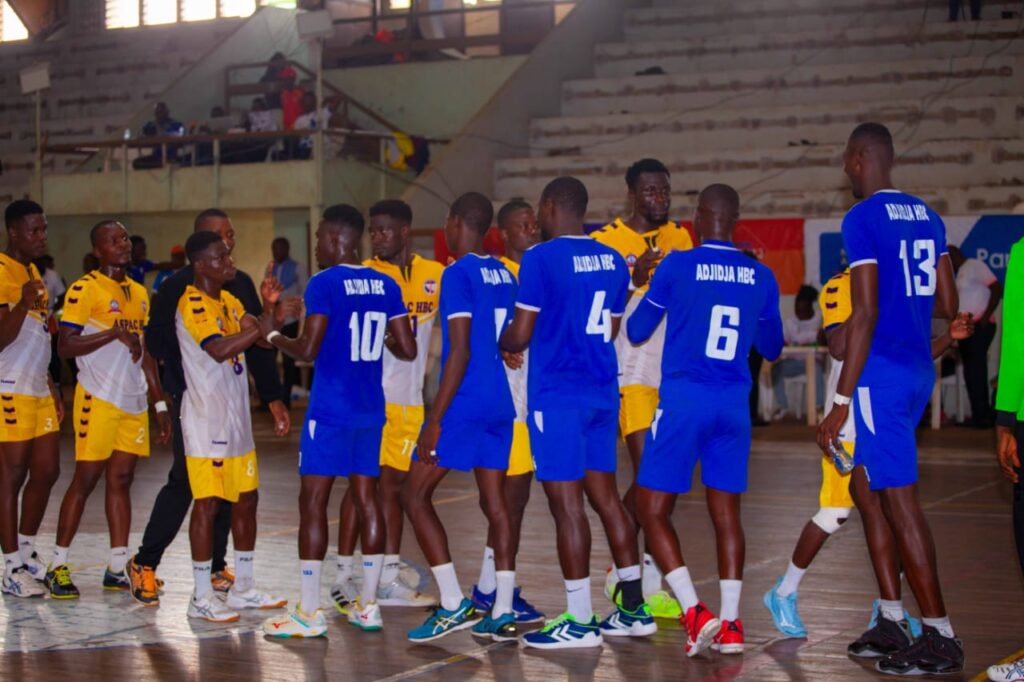 La fête de handball béninois a démarré mercredi au Hall des arts avec le match inaugural de la saison entre Adjidja HBC et Aspac HBC. Après un mauvais début de match, le club de la grande muette a recollé au score en arrachant la parité 11-11 à la mi-temps. Le public qui a fait le déplacement en a eu pour ses yeux avec le beau spectacle offert par les deux équipes. Alors que Aspac HBC dominait de six (6) points d’écart, les militaires ont montré du caractère pour réduire l’écart. ASPAC fait tomber le champion d’entrée en emportant sur le fil 24-25.