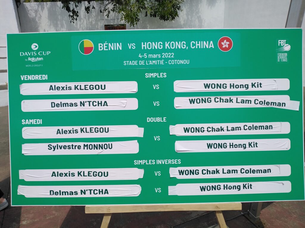 Le Bénin va défier Hong Kong les 4 et 5 mars prochains au tennis club de l’Amitié dans le cadre de la Coupe Davis du Groupe II. A cet effet, le tirage au sort des différentes oppositions entre les deux équipes s’est déroulé dans la matinée de ce jeudi 3 mars 2022 sous la supervision du juge arbitre de la compétition, le Français, Yan Kuszak.