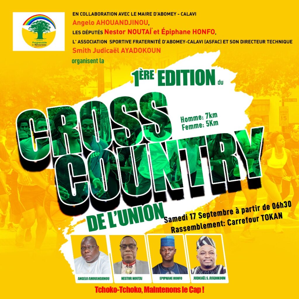 C’est un évènement sportif inédit que la municipalité d’Abomey-Calavi s’apprête à accueillir ce samedi 17 septembre 2022. Sous le leadership du jeune acteur politique Judicaël Ayadokoun, il sera organisé dans cette commune une compétition de la reine des disciplines sportives dénommée « Cross-Country de l’Union ».