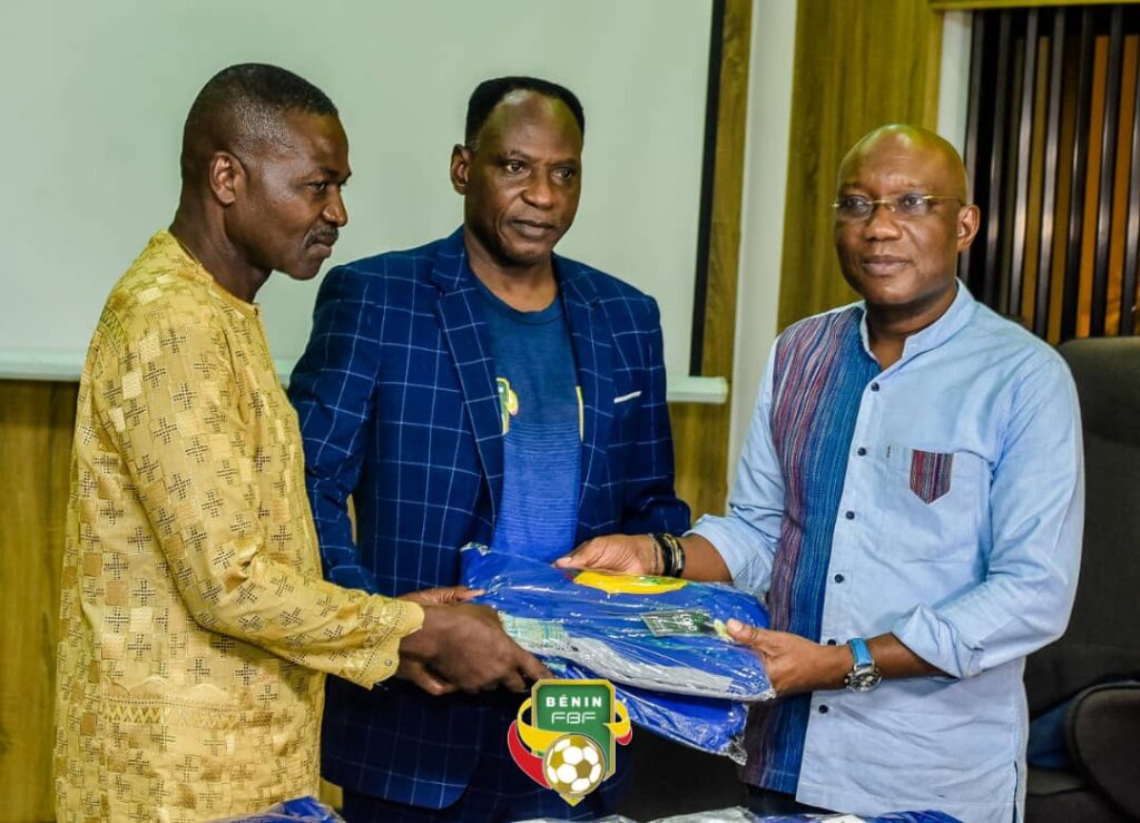 La cérémonie s’est achevée par la remise symbolique des tenues aux membres du Comité exécutif qui se chargeront de les transmettre à l’équipe qui est actuellement en regroupement au Maroc. En retour, la Fédération Béninoise de Football a offert deux maillots de l’équipe nationale à Lolo Andoche en guise de son soutien indéfectible au sport roi. Il faut noter la présence de William Fangbédji et de Laurent Gnassounou respectivement septième et huitième vice-président du Comité exécutif de la Fbf, de Fallilou Tidjani et de Justin Saïzonou, membres du Comité exécutif de la FBF.