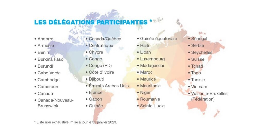 Cette année, plus de 32 délégations sont attendues, avec des participants âgés de 18 à 35 ans comptant ainsi plus de 1500 jeunes, artistes et sportifs, issus des États et gouvernements membres de l’Organisation internationale de la Francophonie (OIF).