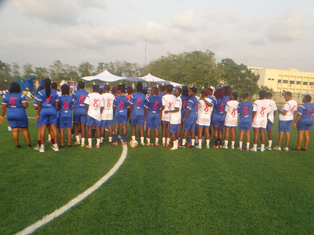 Après les discours et les messages de soutien, place a été faite au sport. Le public présent au Centre d’Excellence a assisté à un match de gala inédit et disputé dans une ambiance à la fois festive et fraternelle. Pour l’occasion, deux équipes spéciales ont été formées. D’un côté, on retrouvait l’équipe des influenceuses, habillée en bleu.