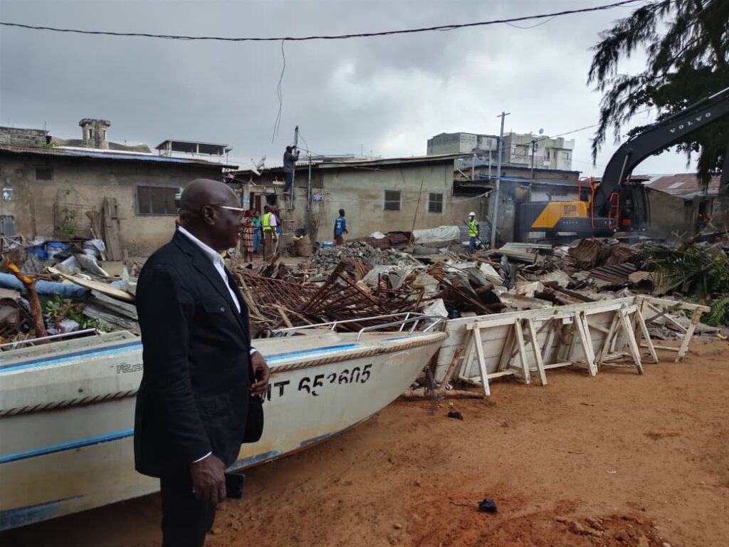 C’est donc manu militari que ces rues des quartiers Abokicodji Lagune et Dédokpo sont à nouveau libérées. Très tôt  lundi dernier, les caterpillars ont été de passage. Baraques et tout habitats érigés en matériaux précaires comme définitifs sont systématiquement démolis. L’opération est étendue aux maisons qui ont leurs puisards, auvents ou vérandas hors des limites réglementaires.  « Aucun centimètre n’est concédé au propriétaire. Chaque parcelle est limitée par les bornes. Il n’y a pas de 1m5 comme certains le pensent ou le disent. C’est pour l’Etat » informe Saliou Adelabou Adédjouma.  Entouré de quelques conseillers, Saliou Adelabou Adédjouma donne ainsi suite aux injonctions de la Préfecture du Littoral et du Ministère du cadre de vie et du développement durable.