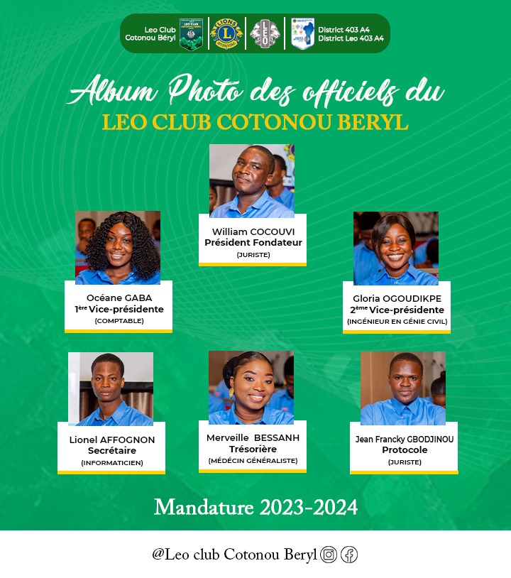 La Salle Laps Service de Gbèdjromède (à Cotonou) a servi de cadre vendredi, 14 Juillet 2023, à la rentrée solennelle du Leo Club Cotonou Béryl du District 403-A4 | District Léo 403-A4 du Lions Clubs International. Occasion pour le bureau conduit par William Cocouvi de procéder officiellement au lancement de son mandat mais aussi de dévoiler les activités majeures qui vont meubler les 12 prochains mois.