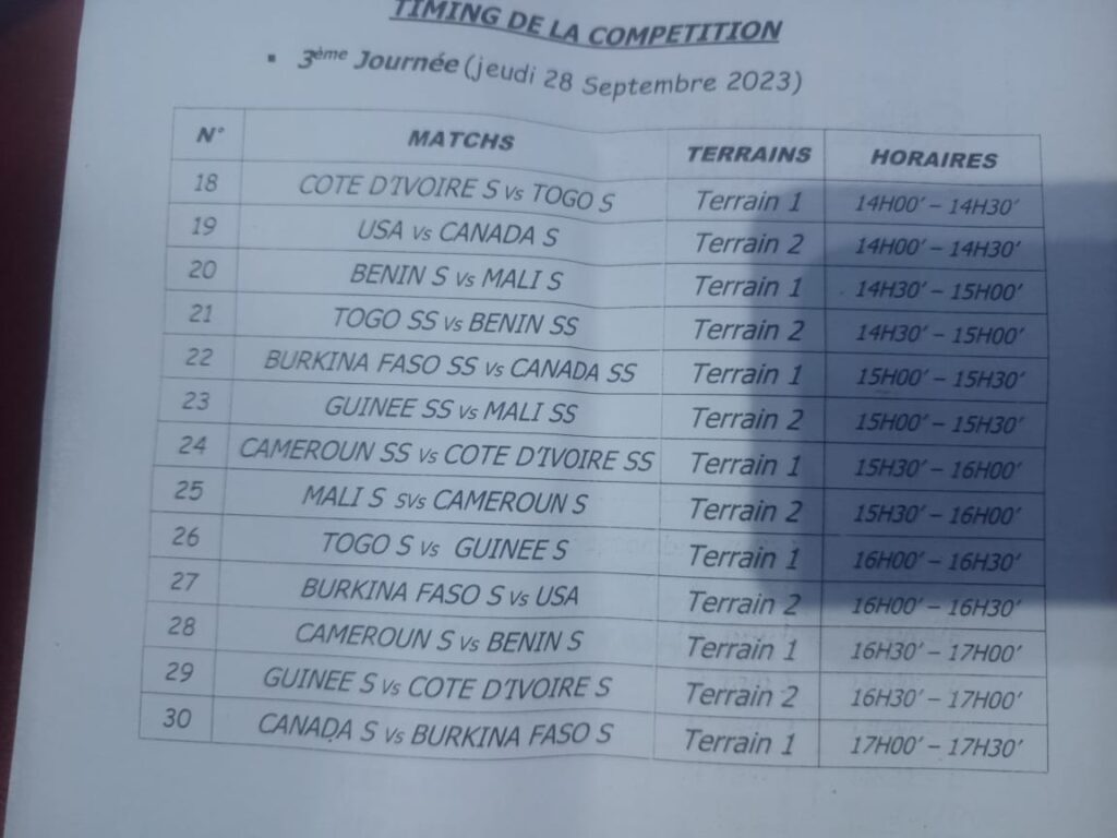 Treize rencontres sont programmées pour la troisième journée de la MARA’CAN Grand Popo 2023 avec un alléchant Bénin-Cameroun chez les Seniors.