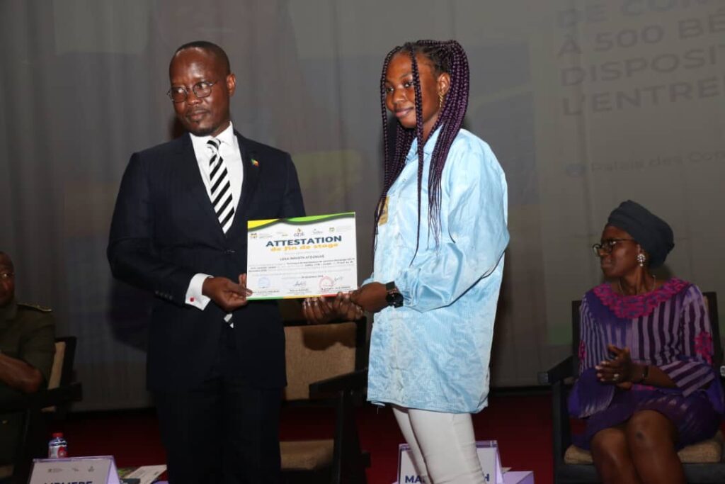 En fin de stage/apprentissage au Copao à Ouidah chez AdMeC Ctib, 474 stagiaires placés par l’Agence Nationale pour l’Emploi (ANPE) grâce au dispositif Azôli ont reçu leurs attestations de fin de formation le mercredi 14 février 2024. Cette cérémonie officielle de remise d’attestation est couplée avec la signature de contrat de travail avec l’entreprise.