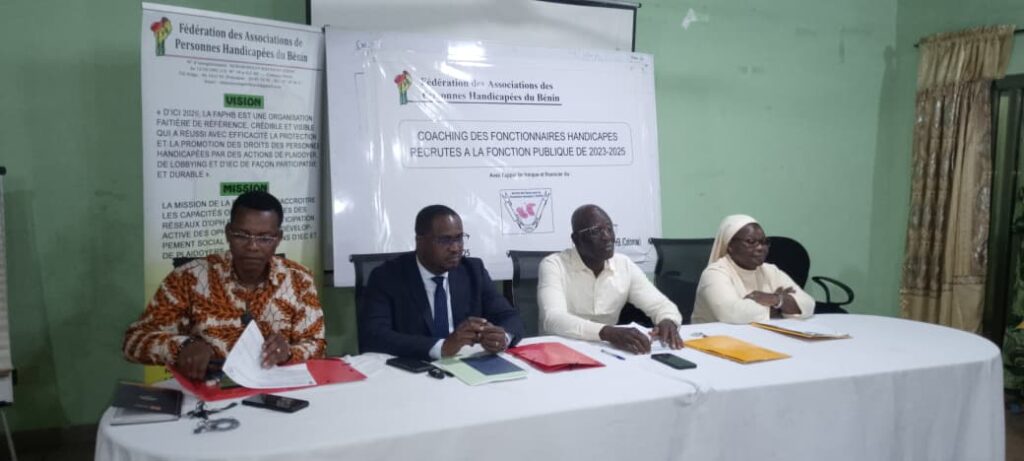 Outiller les personnes handicapées de la fonction publique à mieux accomplir leur mission d’agents de l’Etat. C’est le but d’un atelier de coaching initié par la Fédération des associations des personnes handicapées du Bénin (FaPHB) avec le soutien technique et financier du Service des sœurs pour la promotion humaine (SSPH). Ce sont les personnes handicapées recrutées dans la fonction publique de 2023 à 2025 qui y ont pris part, mercredi 12 novembre 2025, au siège de la FaPHB à Cotonou.