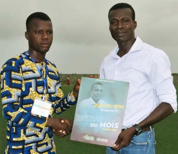 En lice pour le mois de février du trophée Sicâ Fô, le technicien Yessoufou Lafiou se débarque du lot grâce à ses brillants résultats obtenus. Le patron des Orange et Noir remporte le prix du meilleur entraîneur de la Zone Ouémé-Plateau avec les Dragons de l’Ouémé. Doté d’une qualité de formateur et de vrai tacticien, Yessoufou Lafiou est un amoureux du système tic-tac. Un système avec lequel, les Dragons de l’Ouémé crachent du feu ardent sur leurs adversaires. Invincible dans le mois de février, la formation du coach Yessoufou Lafiou n’a connu aucune défaite au cours de ses 7 apparitions. Le meilleur technicien du « Pieds d’Or » du mois de Février 2021 et ses poulains se placent à la tête du classement du championnat à l’issue de la première partie de Ligue Pro dans leur zone. Grâce à son génie et son savoir-faire, Yessoufou Lafiou ne donne aucune chance aux adversaires et engrange 17 points sur les 21 possibles avec 5 victoires et 2 nuls. Il reçoit sa récompense sur le Stade Synthétique de Djeffa lors de la rencontre qui a opposé Djeffa Fc aux Dragons de l’Ouémé (1-0). Une performance qui confirme le bon travail que fait l’homme à la tête de cette équipe de Porto-Novo. Il est à noter que ceci qualifie les Dragons de l’Ouémé pour la Super League Pro du Bénin qui réunira les 12 clubs ayant tiré leurs épingles du jeu lors de la League-Pro.