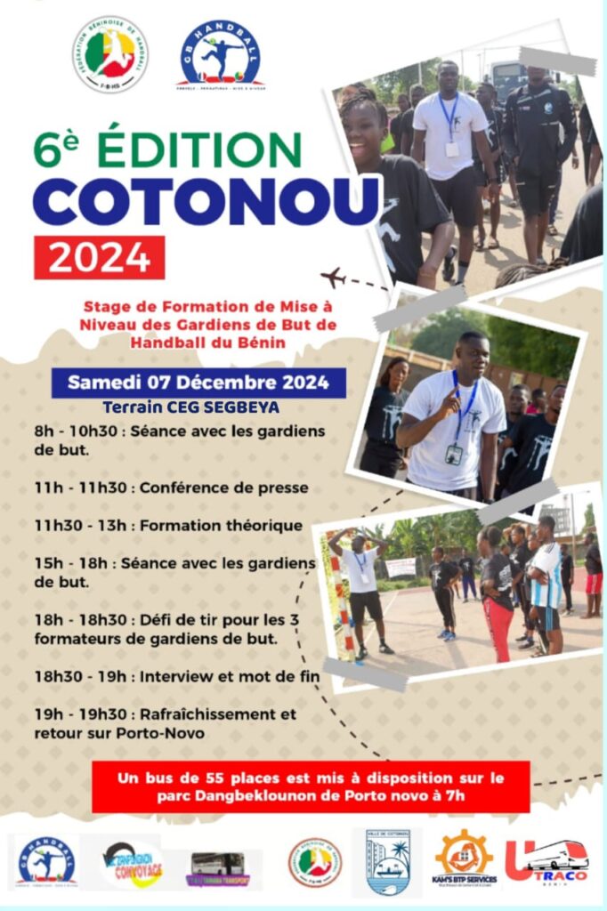 Luc Josias Zanfongnon rebondit et annonce que l’étape de Cotonou, prévue pour le samedi 7 décembre prochain sera sublime avec la participation des experts dont Mohamed Dangana, Fèmi Tunji, Barry Bah Tchené et Show Guy. « Nous préparons également une rencontre à Cotonou qui promet d’être mémorable avec la participation d’experts nigériens et d’autres spécialistes de renom », a-t-il annoncé avant d’indiquer «Pour la première fois, le stage s’ouvrira aux joueurs de champ en présence d’entraîneurs locaux et étrangers. Cette étape de Cotonou sera ainsi un avant-goût de la septième édition où le programme prendra une envergure nationale sous l’appellation « Stage de formation de handball du Bénin Luc Zanfongnon « .