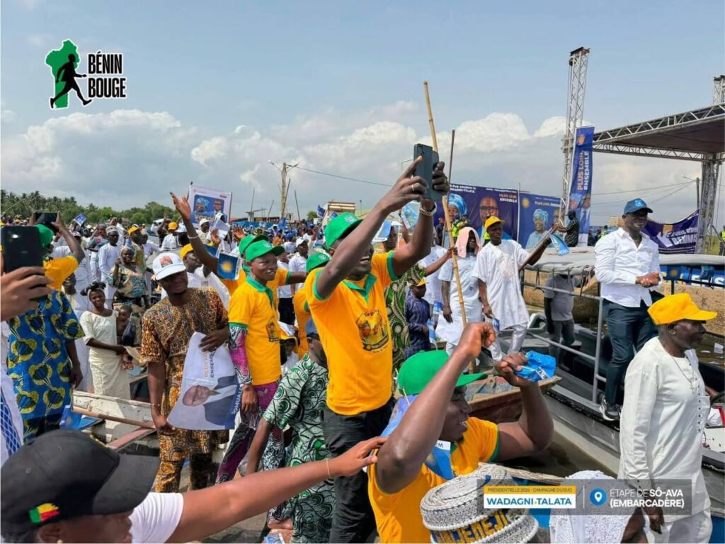 L’escale à Sô Ava fut courte, mais la logistique était digne d’une grande opération navale. Sur chaque barque immobilisée dans l’eau, les partisans, debout ou assis, agitaient des banderoles et des affichettes. Les femmes en uniformes battaient des castagnettes pour laisser transparaître leur joie. Romuald Wadagni, avec la précision qu’on lui connaît, et Mariam Chabi Talata, avec sa force tranquille, ont salué une foule qui ne se trouvait pas sur les trottoirs, mais sur les flots. Le candidat a lancé, sous les applaudissements nourris : « Chers parents, vous n’imaginez pas ma joie d’être avec vous ce matin. Sô Ava est le premier à être dans les rangs. » En quittant la cité lacustre, le duo a laissé derrière lui une certitude : dans cette ville, la politique se joue à la rame et au moteur, et le courant, ce jour‑là, portait leurs promesses vers un horizon dégagé.