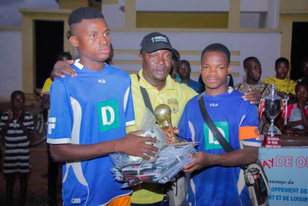 Par ailleurs : Au terme de la remise des récompenses aux 3 meilleures équipes, le promoteur a présenté à l’assistance le trophée qu’il met en jeu pour le compte de son 2e projet de tournoi au titre de l’année 2022. Puisque pendant les congés de fête, il organise la 2e édition du tournoi Challenge Ouèdo, dont il est également le promoteur.