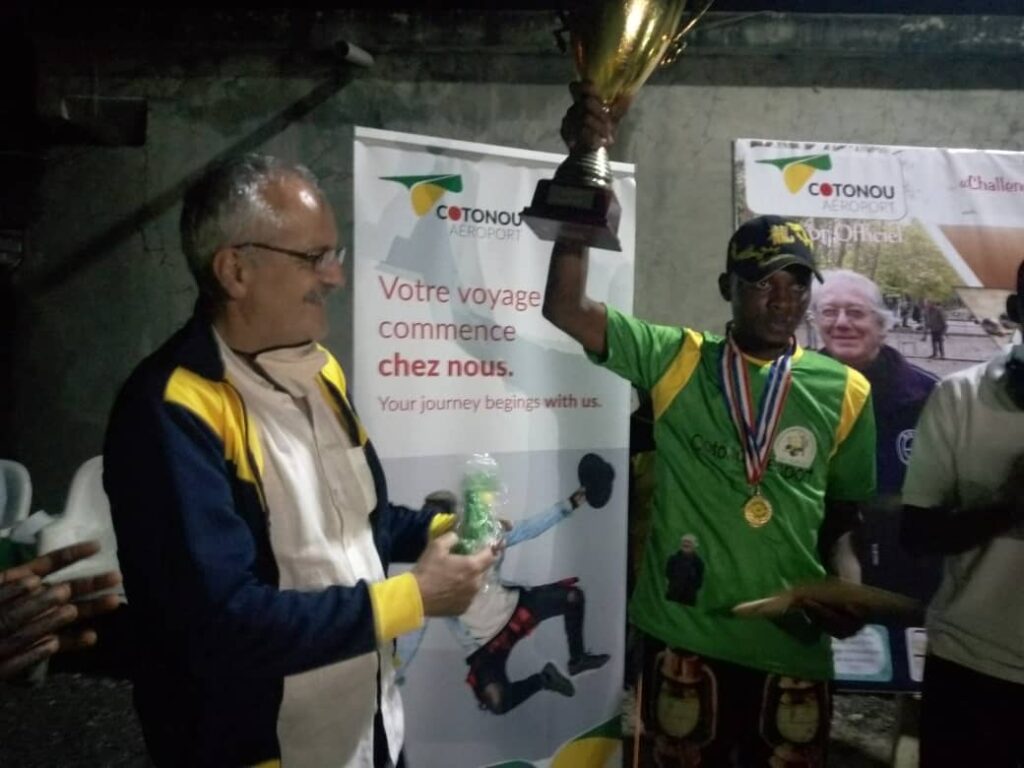 Aron 1er a décroché les trophées du « Challenge Daniel Doury ». Une initiative de l’Association sportive Guépard Pétanque club d’Abomey-Calavi (AS-GPCAC). C’était dimanche 6 décembre 2020, à Godomey dans la commune d’Abomey-Calavi.